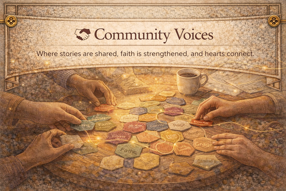Where stories are shared, faith is strengthened, and hearts connect. Community Voices highlights guest reflections, testimonies, creative contributions, and words of encouragement from those woven into The Patchwork Quilt Oniverse™. Every voice matters. Every story adds texture. Together, we form something stronger than any one thread alone — a living quilt of courage, compassion, and Christ-centered hope.